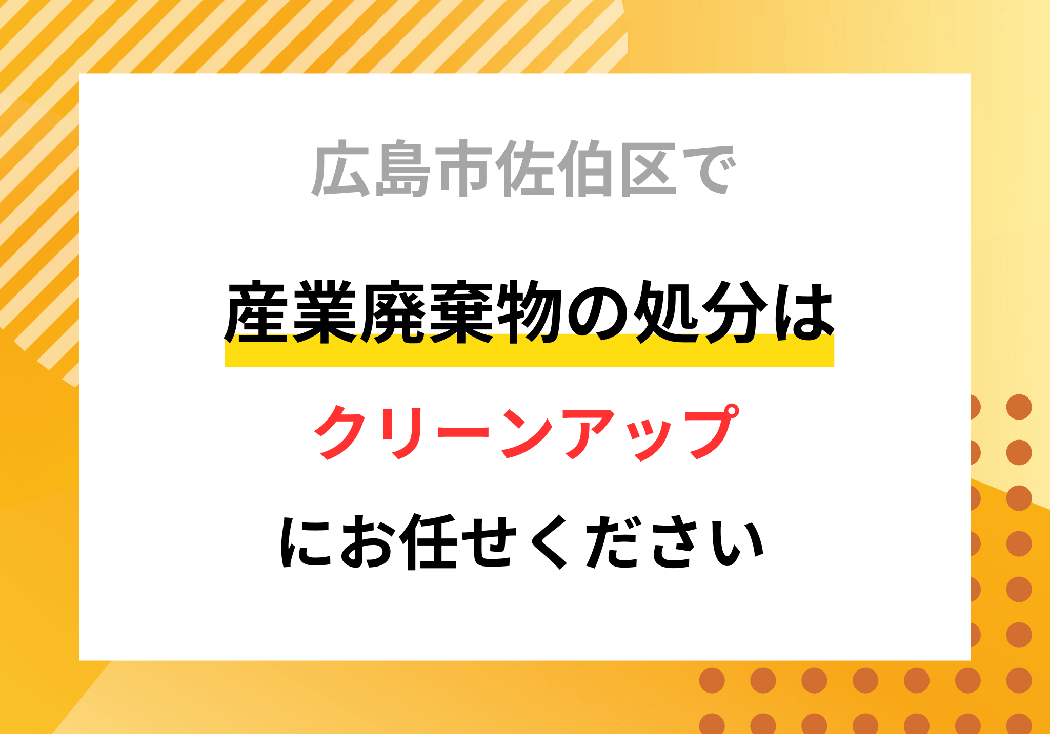 広島市で産業廃棄物や事業系のゴミごみを自力で処分できずにお悩みの方は便利屋「クリーンアップ」におまかせください。産業廃棄物の処分は5,500円〜で対応いたします。お見積もりは無料ですので、お気軽にご相談ください。